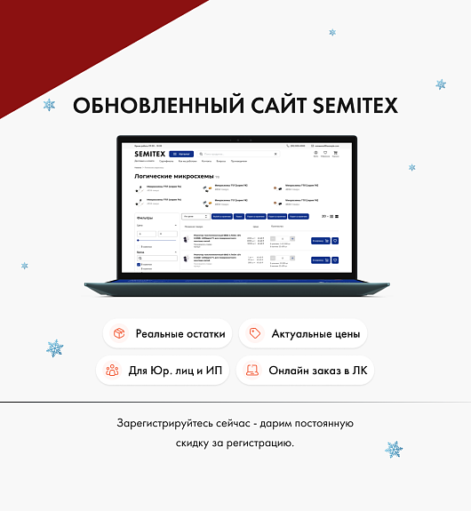 Компания Семитэкс более 25 лет работает в сфере оптовых поставок электронных компонентов. За это время мы выстроили прочную логистическую цепочку с производителями из Азии, чтобы обеспечить оптимальное качество поставляемых изделий по низким ценам.
